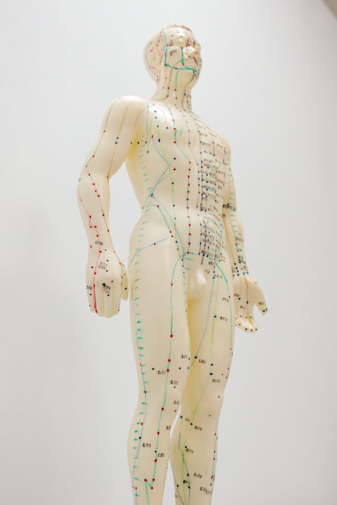 Hay cientos de puntos de acupuntura (llamados acu-puntos) a lo largo de los 14 mayores meridianos, o vías que llevan energía, del cuerpo. Los médicos Chinos del siglo dieciséis usaban el termino «Qi» (pronunciado «chi») para describir la energía que circula por los meridianos. La creencia de que las enfermedades son causadas por una interrupción de la Qi, que causa un desequilibrio de energía. La acupuntura puede corregir este desequilibrio de energía